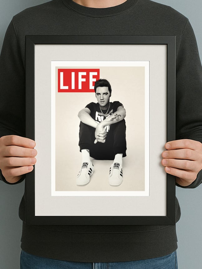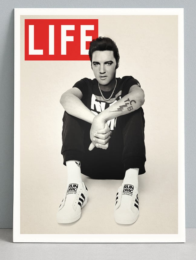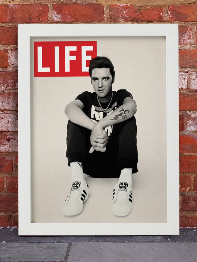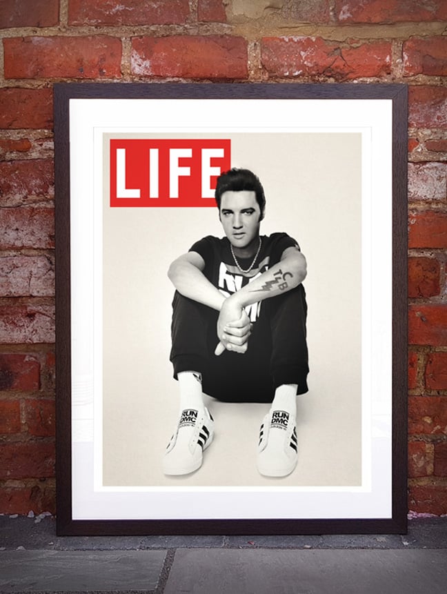 Fake life cover, Elvis featured in 80s Run DMC threads! This print has sold world wide!
